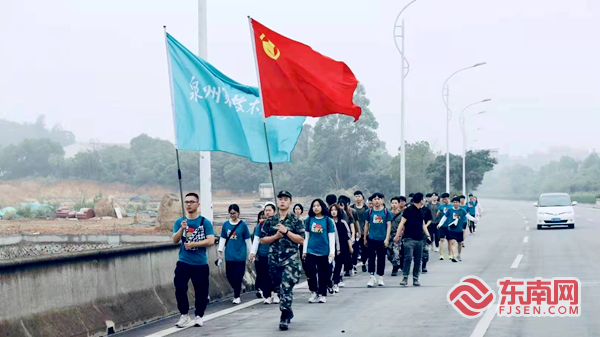 (闽南网记者 曾小琴 尤燕姿 通讯员 洪春锦 邓皓予 杨颖聪)今日是五四青年节。今早清晨5点4分,泉州职业技术大学百名师生,从晋江内坑校园出发,徒步20公里,来到晋江新塘街道梧林传统村落。他们用脚步丈量城市红色...