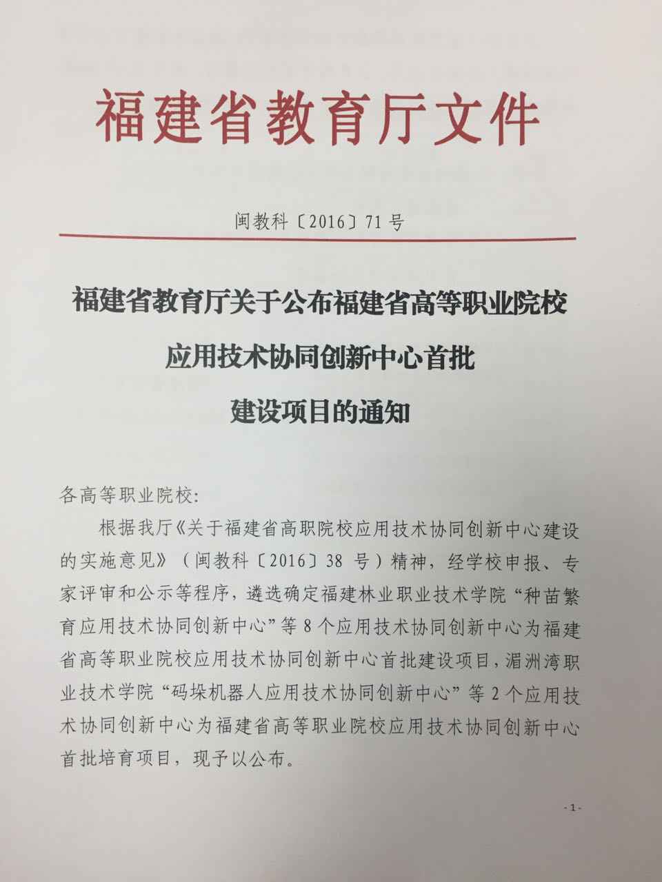 9 月19日,根据福建省教育厅《关于福建省高职院校应用技术协同创新中心建设的实施意见》(闽教科〔2016〕38号),经申报,专家评审等程序,我校的“清洁能源应用技术协同创新中心”项目被定为 福建省高等职业院校...