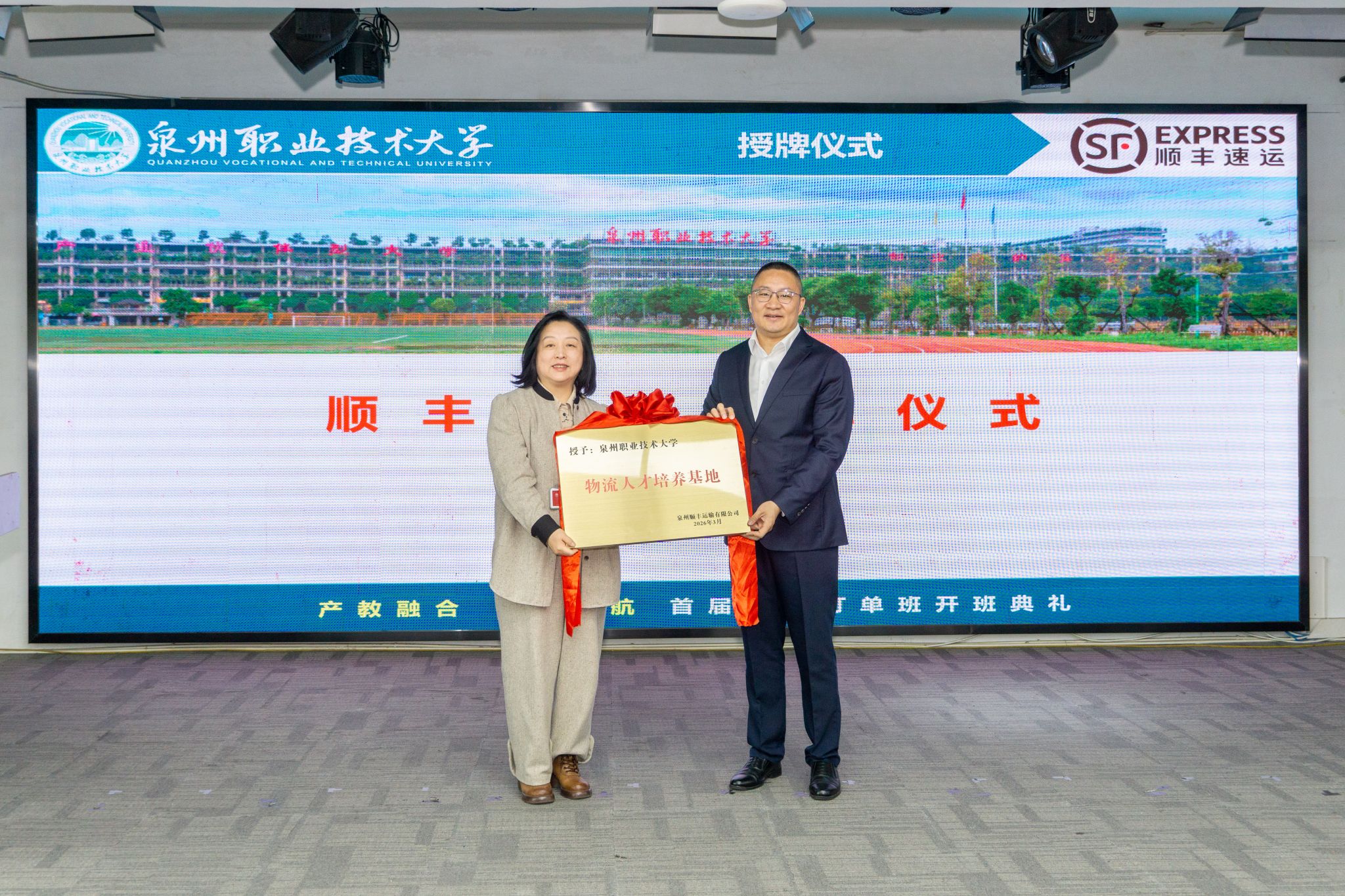 3月17日上午,泉州职业技术大学商学院与顺丰速运福建区联合举办的首届顺丰订单班开班典礼在学校举行。现代物流管理专业是我校国家双高计划电子商务专业群的核心组成专业,这次开班典礼是校企双方在此专业人才培养上的深度携手,标志着校企合作迈入产教融合新阶段。出席活动的嘉宾有顺丰速运福建区中转管理部主任卿宏安、人力资源部主任王斌、招聘组经理林贞、校招校企接口人吴晓军,我校校长助理、教务处处长苏康敏,商学院院长...