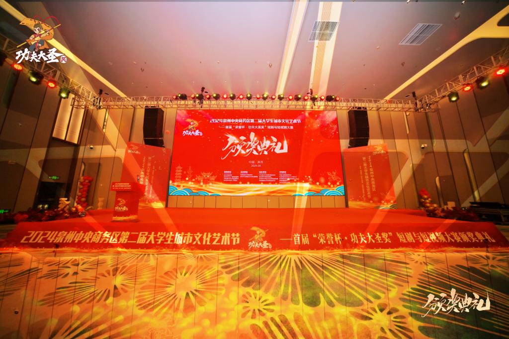 5月30日,2024泉州中央商务区第二届大学生城市文化艺术节——首届“荣誉杯·功夫大圣奖”短剧与短视频大赛颁奖仪式在泉州荣誉国际酒店举行。本次活动由泉州市教育局、市文旅局,丰泽区委、区政府指导,由团市委、泉州中央商务区丰泽区指挥部主办,丰泽区委宣传部、区教育局、区文体旅游局、团区委协办。