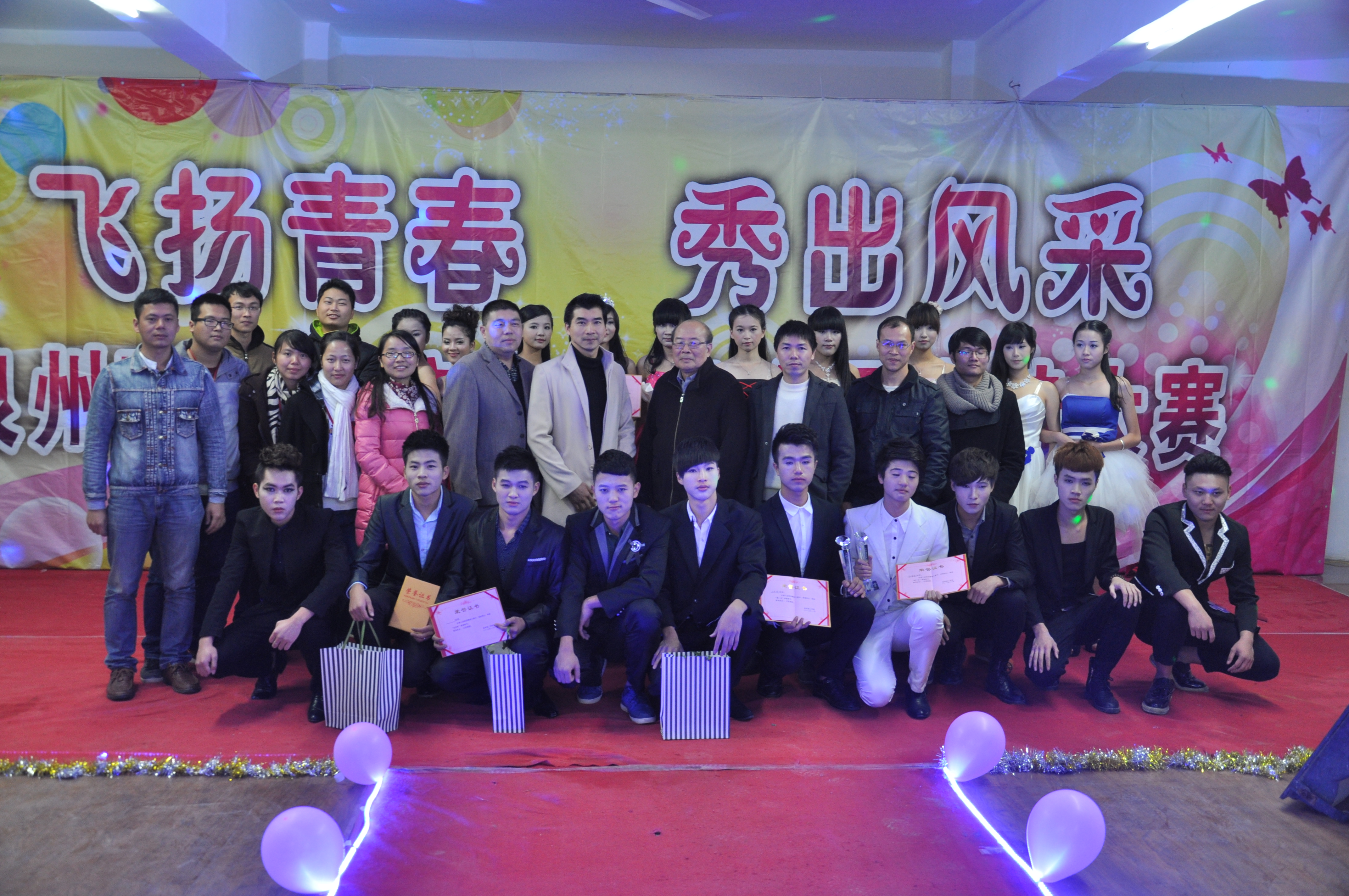 1216日晚19点,泉州理工学院638舞房掌声不断。由学校团委主办,校学生会承办的泉州理工学院第七届“飞扬青春·秀出风采”大学生模特大赛决赛在此举行。财经系主任翁长武教授、校团委书记蔡金佩、财经系党总支副书记陈荣惠、商贸系党支部书记、校团委副书记罗敏、数传系书记黄镇红,以及部分团总支书记、辅导员和学生们一起观看了一场精彩的模特秀。比赛邀请到学校洪传森、蓝振华、王燕芳三位老师担任评委。