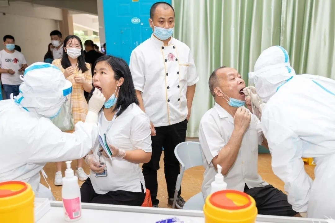 本次检测的对象为在校教师、行政人员以及后勤、工程人员等。在检测现场,全体参检人员分部门、分时段、分批次有序进入指定检测取样区域,核实登记身份信息后,由晋江市第二医院(安海医院)组织医护人员进行采样检测。