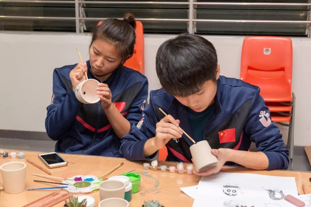 手绘面具、沙画、染布、陶瓷......中华文化的魅力让各国各地区的球员们痴迷不已,大家用自己天马行空的创意产生一件件充满传统文化色彩的作品。很多球员几乎每天都参加,还会拍照留念,发给家乡的亲人和朋友们欣赏。
