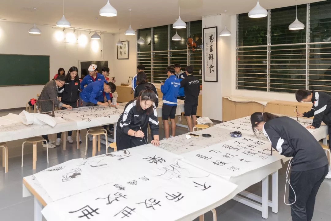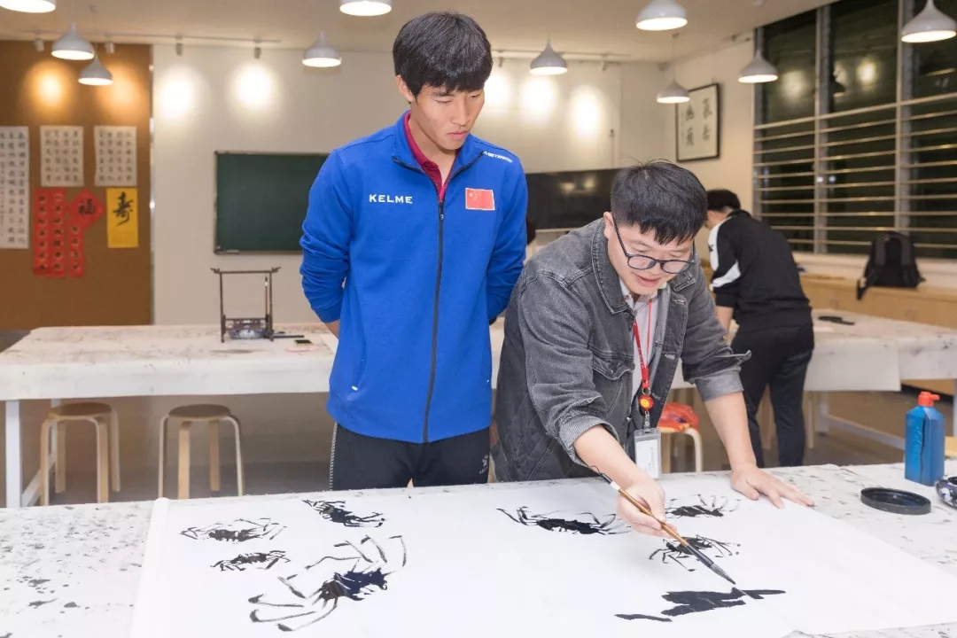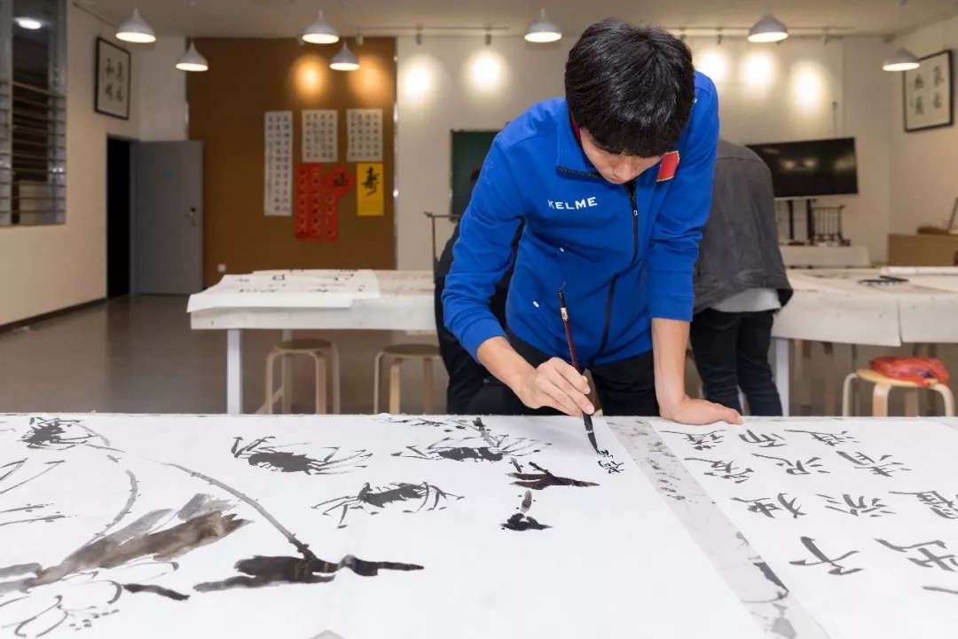 在书画工坊,外国球员拿起毛笔,在纸上一笔一划模仿,虽然对书法不太了解,但还是抵挡不住球员们的热情。韩国球员江希望很喜欢中国书法,纸上写满了中韩之间友谊,他要将作品带回国,和国内的小伙伴一起分享。