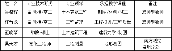 团队成员包括吴铭辉、林长进、许晋龙、兰晓琴、吴天才,涉及土木工程建筑及工程测量两个专业领域。