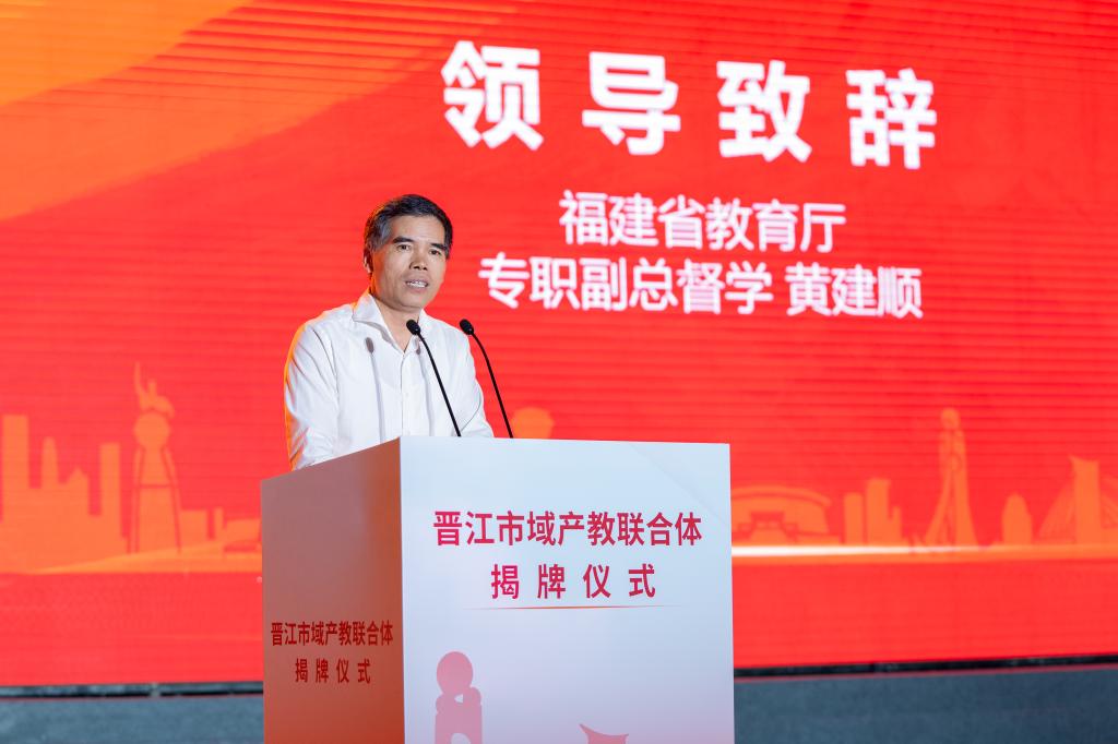 黄建顺在致辞中强调,晋江产业经济发展较好、职业教育体系较为健全,有优渥条件和扎实基础。在此次成立的晋江市域产教联合体内,晋江经济开发区是省级开发区龙头,牵头企业福建盼盼食品有限公司是我省首批产教融合型企业,牵头学校泉州职业技术大学是全国首批、福建省目前唯一的本科层次职业教育试点院校。希望晋江市域产教联合体能面向全国,奋楫争先,探索出一条可复制、可推广的产教融合示范道路,打造联合体建设的“晋江模式”,促进教育和产业双向赋能、共生共长,争创职教改革创新发展高地。