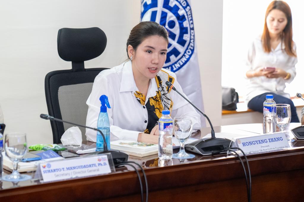 中菲丝路学院基金会主席张红阳致辞表示,坚信通过与菲律宾技术教育与技能发展部的合作,共同探索创新“中⽂+职业技能”教育模式,将为中菲两国间的⼈才发展和⽂化交流做出更大贡献。她强调,在菲律宾技术教育与技能发展部的支持下,中菲丝路学院基金会与泉州职业技术大学共建“菲律宾海丝学院”,将共同推动职业教育“出海”,为两国培养更多具备实践能力、创新能力和社会责任感的职业教育优秀人才,更好地服务和帮助两国企业做好相关国际人力资源的储备。