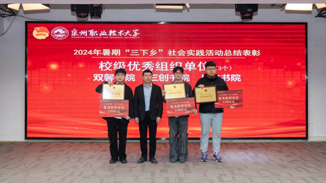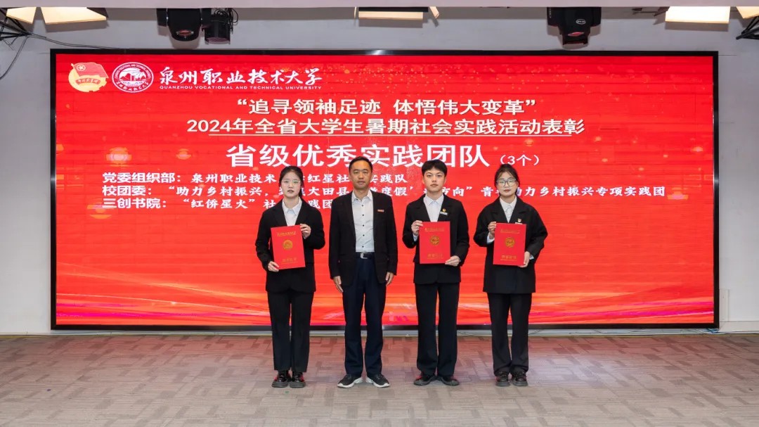 本次暑假社会实践共评选出校级“先进个人”50名、优秀工作者14名、优秀心得4篇、优秀调研报告12篇、优秀团队12支、优秀组织单位3个,并表彰我校在省教育工委主办的“追寻领袖足迹 体悟伟大变革”2024年全省大学生暑期社会实践活动优秀实践团队3支、优秀实践个人1名、优秀实践成果1项。