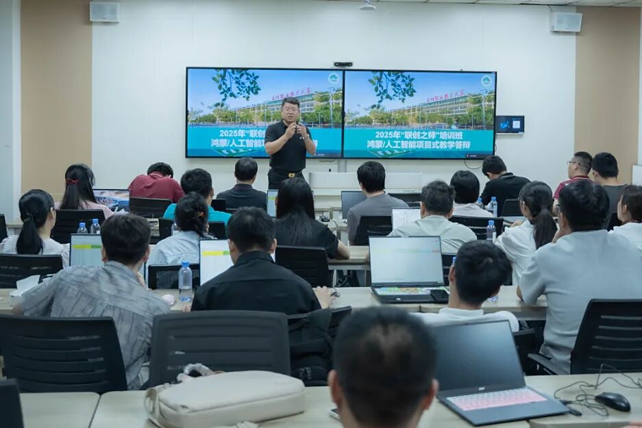 奇安信高教合作中心总监李向辉深度剖析网安领域人才协同培养路径;华为高级讲师们以项目式教学为载体,带领全院教师完成鸿蒙与人工智能技术项目实战教学,并组织答辩与复盘。