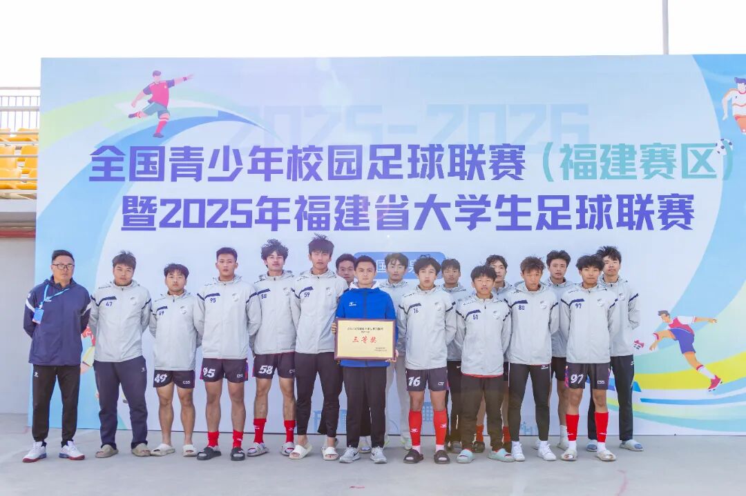 11月23日至29日,2025-2026全国足球联赛(福建赛区)暨2025年福建省大学生足球联赛在泉州职业技术大学举办。来自全省多所高校的队伍齐聚绿茵场,以球会友、拼搏进取。我校男足获男子丙B组三等奖,队员蔡彬彬荣获“最佳射手”,学校同时获评体育道德风尚奖。赛事组织有序、保障有力,展现了我校体育育人的扎实成效。