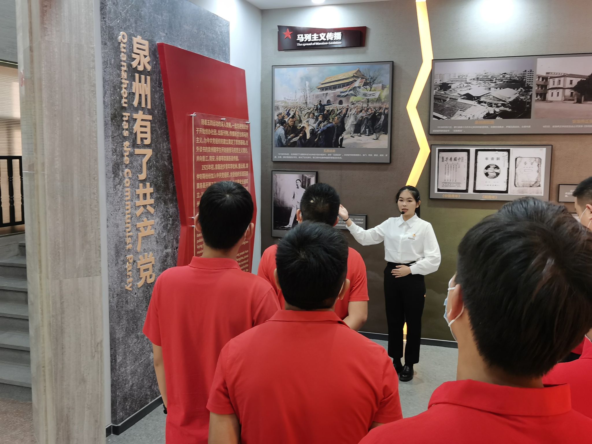 组建中共泉州中心县委历史纪念馆讲解团。书院党总支与地方政府共建中共泉州中心县委历史纪念馆讲解团。该团队自2021年成立以来,经过系统培训,每年承担中共泉州中心县委历史纪念馆志愿讲解服务。每年的团队成员需要反复熟读《烽火内坑》《中共泉州中心县委历史纪念馆预览图》等书籍,熟悉了解纪念馆每一件文物、每一张展图背后的故事和来历,深入了解革命英雄的感人事迹,掌握讲解的内容和技巧。同时,学习《讲解员礼仪》《讲解员语言》《展馆讲解注意事项》《讲解员讲解技巧》等课程,取得较好成效。如2021年团队成员12人,在46天的志愿服务讲解中,共接待了55个单位(部门),共计2482位参观者,得到参观者的肯定。在平时,讲解团同学还为学校师生讲解地方革命斗争历史故事和革命先辈的先进事迹,相关做法曾被学习强国、福建日报、新福建、晋江经济报等媒体报道。