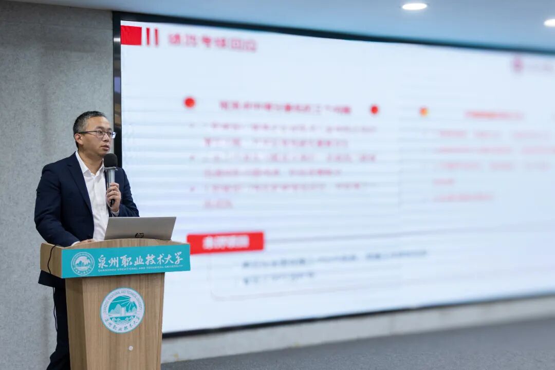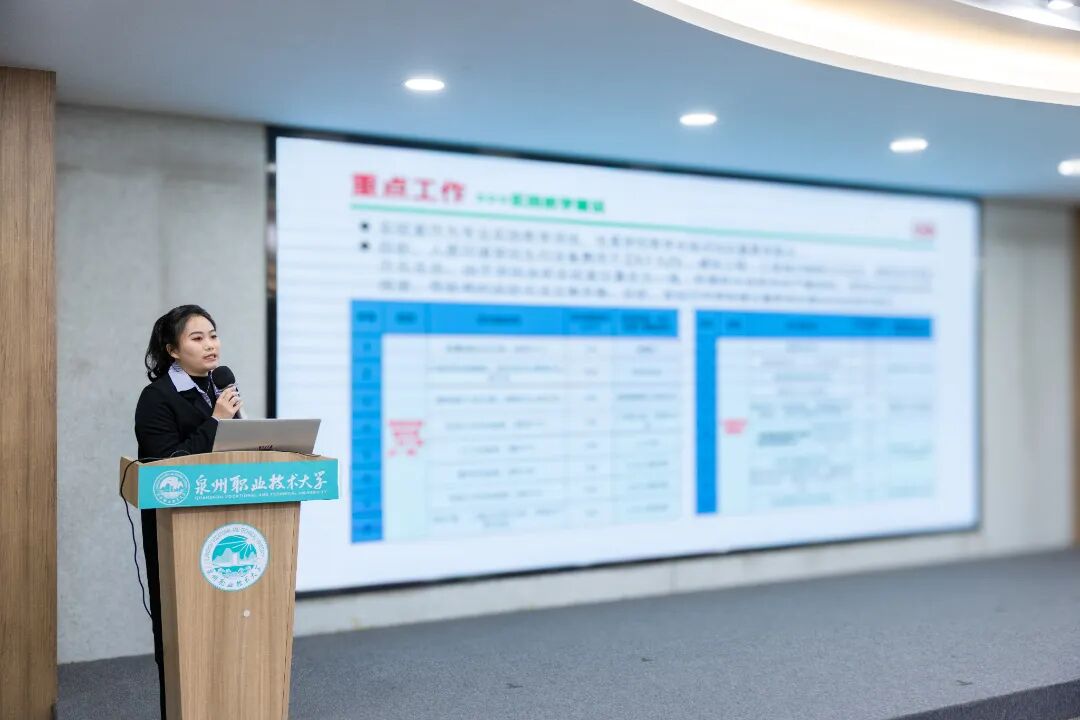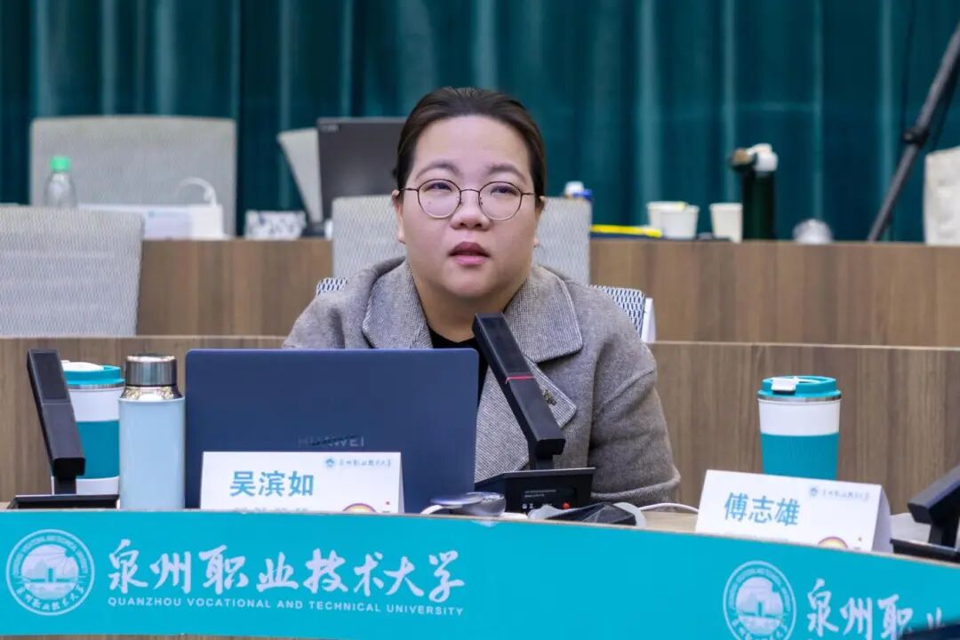 述职总结会上,吴滨如作《服务需求、深化产教城融合,提升关键办学能力》的主题报告,从“职业本科办学模式的思考”“产教城融合的探索与实践”“几点体会”三方面进行阐述,梳理学校扎根晋江、服务泉州、面向福建,主动对接服务区域产业发展和国家战略布局需求,围绕深化产教城融合,全速推进基于“产业伙伴型大学”和“市域产教联合体”双轮驱动的职业本科办学模式,推动学校高质量发展。她特别分享、解读了5个产教城融合的特色案例,分别是“以产定教”的省“双高”新一代信息技术专业群、“助产高端”的省“双高”智能装备制造专业群、“与产共荣”的国家“双高”电子商务专业群以及工艺美术专业群服务城市文旅产业、城市更新专业群服务未来城市建设,全面展示学校与城市、产业深度融合的实践探索及经验模式。