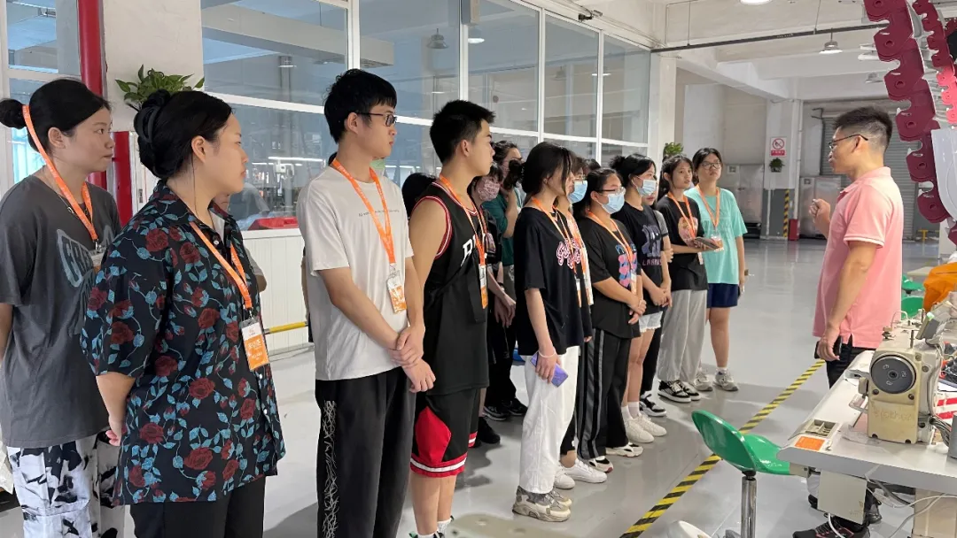 学生们有的加入了压粉的岗位、有的车缝起了口袋、有的帮忙加工帽绳、有的做起了大货质量检测的工作、还有的体验了一把包装的工作。