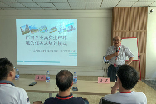 产教融合、校企合作是职业教育的基本办学模式,是办好职业教育的关键所在。为深入贯彻落实党的十九大精神,落实《国务院关于加快发展现代职业教育的决定》要求,完善职业教育和培训体系,深化产教融合、校企合作,根据2018年教育部会同国家发展改革委、工业和信息化部、财政部、人力资源社会保障部、国家税务总局制定了《职业学校校企合作促进办法》的文件精神,我校商学院与中国人民财产保险股份有限公司厦门市分公司共同建立“泉州理工--中国人保金融工作室”,基于“面向企业真实生产环境的任务式培养模式”,共同探索拓宽商科类应用型人才的培养路径,提高商科类应用型人才的培养质量。