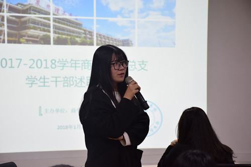 1月7日,商学院团总支在第二会议室组织召开2017-2018学年商学院学生干部述职报告会。